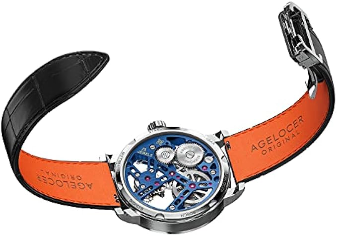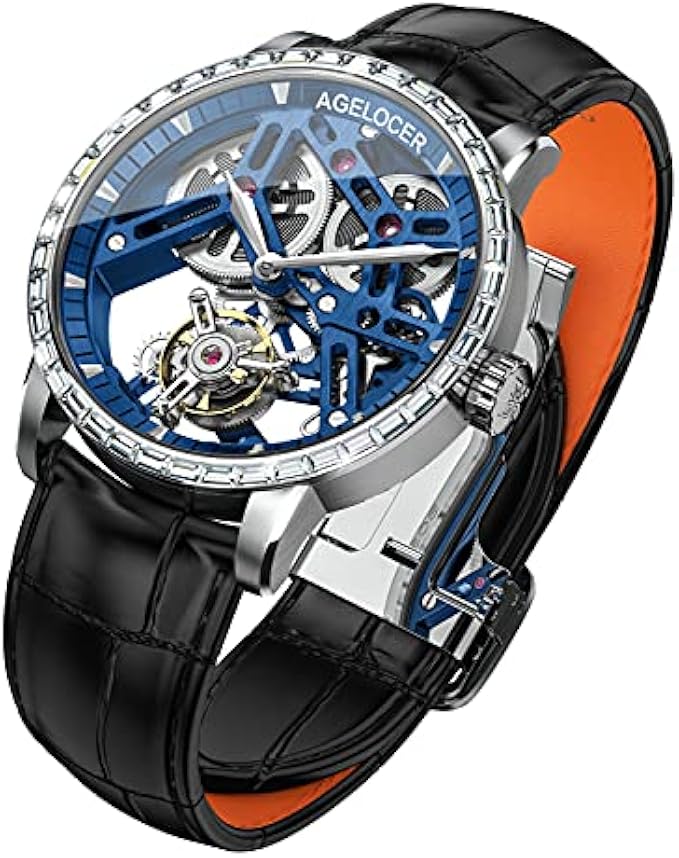 ⌚Flying Tourbillon Movement: Equipped with 80 hours power reserve, double-spring linkage system, incabloc triangle shock absorber, 4HZ vibration frequency, 25 ruby bearings, the men's dress watch use high-grade satin brushed & polished, keep time accurate.