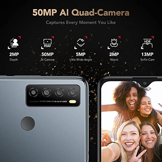 • Powerful, Smooth and Safe - With the 6GB Ram storage and Octa-Core processor, this unlocked cell phone provides you with an instant response time. Keep all of your precious memories with the 64GB built-in storage, and even more with a Micro SD card (sold separately) that lets you add up to 512GB memory. You can also multitask smoothly thanks to the Android 12 operating system and the floating window mode. The phone’s face unlock technology brings a carefree experience with abundant joy.