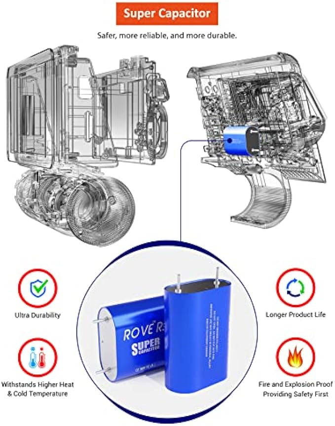 • 【Super Safety by Super Capacitor】ROVE R3 is powered by a Super Capacitor rather than a lithium-ion battery. This ensures survivance and safety in both extreme hot and cold weather conditions from -4°F (-20°C) ~ +158°F (+70°C). Unlike regular internal batteries, Super Capacitors provide a longer camera lifespan and prevent internal damage.