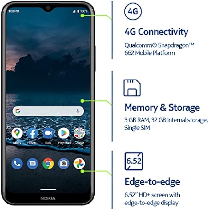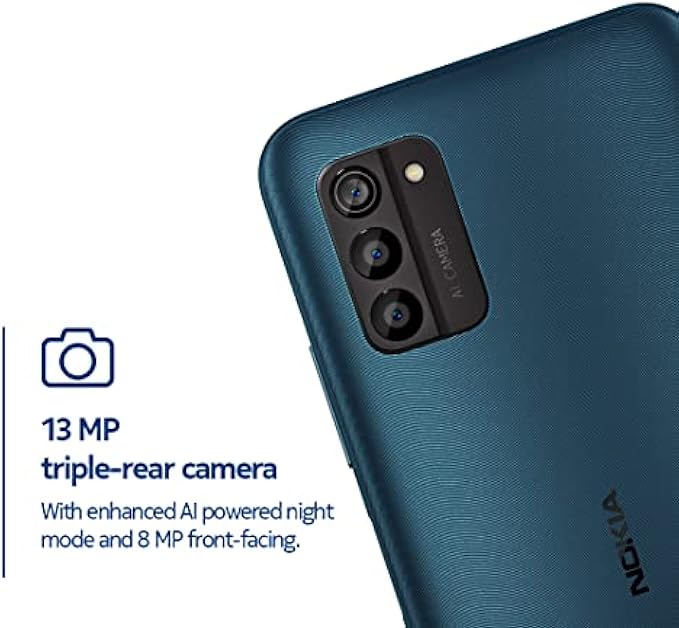 Triple-rear 13MP camera with enhanced AI powered night mode and 8MP front-facing camera for selfies and video chats.