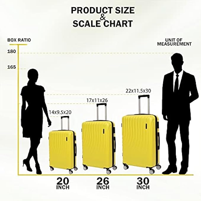 • CAMEL MOUNTAIN Carry on luggage set: Three different sizes of luggage 20inch/26inch/30inch suitcases nestable storage. 20" carry-on luggage overall dimension:14"*9.5"*20", 26" checked luggage overall dimension: 17"*11"*26"; 30" checked luggage overall dimension:20"*11.5"*30".