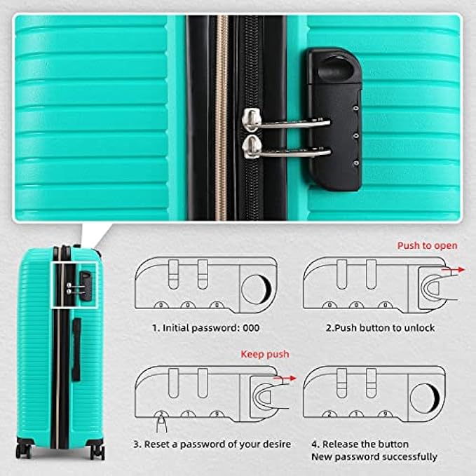 • Standard lock: Each suitcase(except 14inch) comes with a standard lock to keep your belongings safe and secure during travel. No need to worry about someone tampering with your luggage, adjustable & sturdy ergonomic aluminum 3-step telescoping handle allow you to maneuver in tight spaces and provide effortless movement.