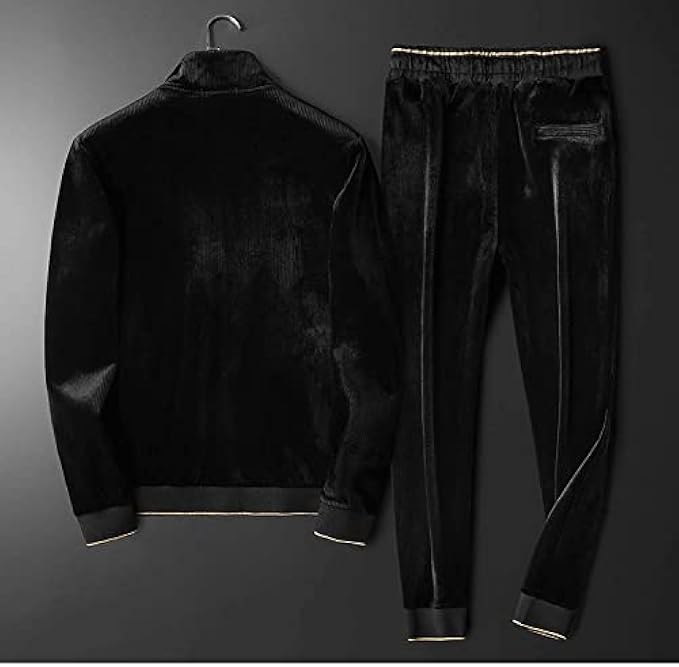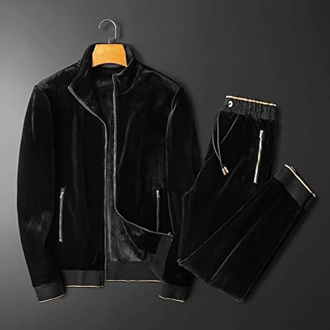 MMLLZEL Autumn and Winter Clothing Men's Fashion Tracksuit Set Trend Gold Velvet Thickening Plus Velvet Zipper Suit (Color : D, Size : 6XL Code)