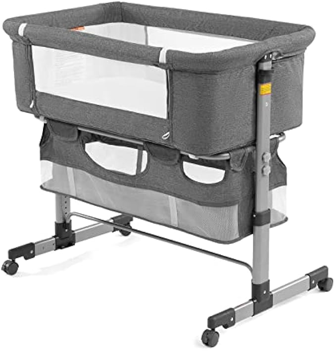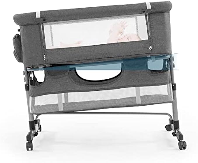 Multifunctional design:Used as a baby crib or bedside sleeper attached to adult bed,Simply roll down the co-sleep side and latch it to your bed;Simply unzip the mosquito net to allow your baby to crawl and play freely;raised unilaterally to prevent the baby from spilling milk