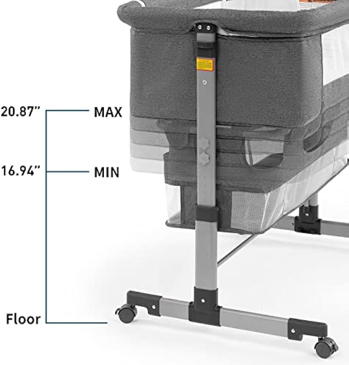 Height Position Adjustment--16.9'' Min,20.8'' max(from the floor to the bottom of the bassinet/mattress),suit for most adults' beds