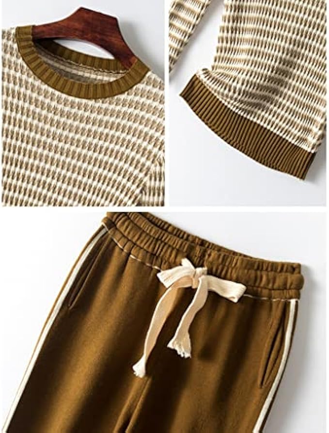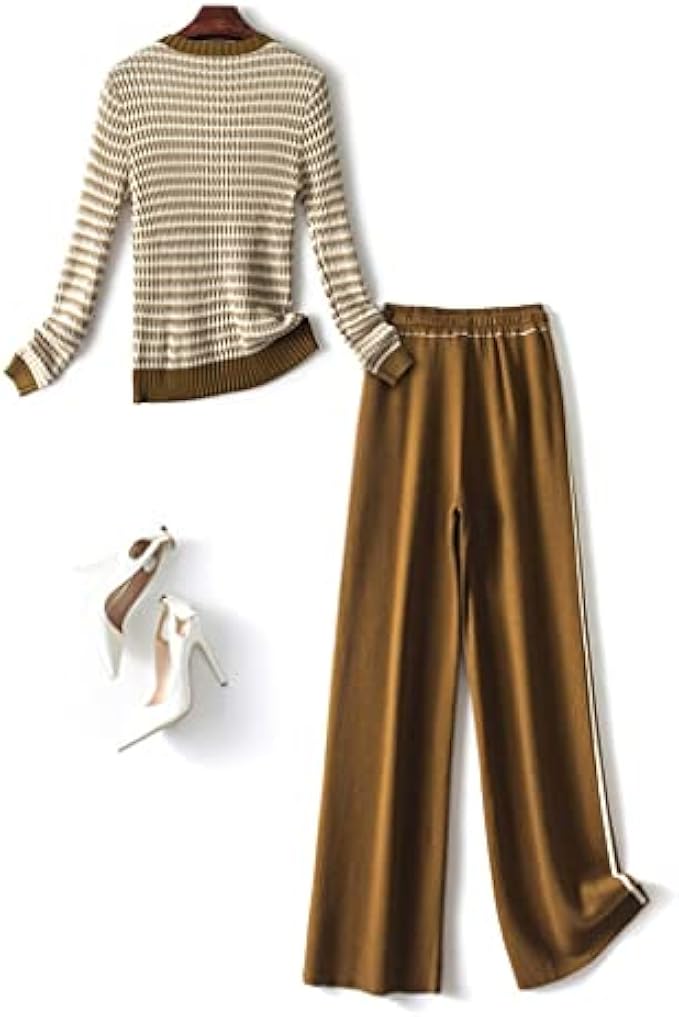 QJPAXL Autumn Winter Knitted Suit Pants Set 2 Piece Women Fashion Striped Pullover Sweater Top Trousers Casual Outfits (Color : D, Size : L Code)