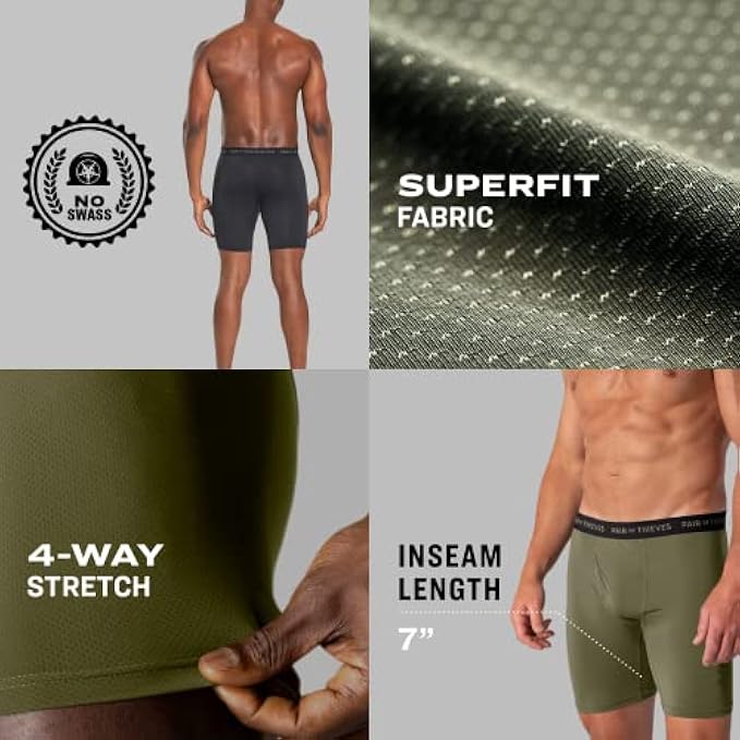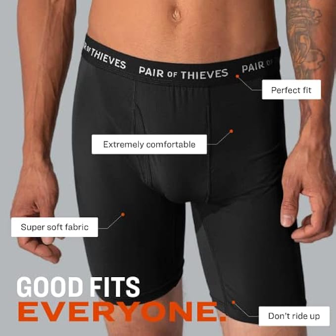 <li class="a-spacing-mini"><span class="a-list-item"> CHECK US OUT – Love Pair of Thieves? We feature all our underwear, t-shirts, socks, and loungewear there. You can get to it through the blue link above our product title. </span></li> <li class="a-spacing-mini"><span class="a-list-item"> Machine Wash </span></li> <li class="a-spacing-mini"><span class="a-list-item"> AMZ EXCLUSIVE: Upgrade your underwear drawer with a touch of exclusivity! Available only on AMZ, this premium line of smile-sparking, junk-pampering boxer brief underwear for men sports our latest and greatest designs you won’t find anywhere else. </span></li> <li class="a-spacing-mini"><span class="a-list-item"> NEXT-LEVEL COMFORT: Seize the day with our boxer briefs you won’t want to take off (but please do). Our long boxer briefs for men keep you dry, comfy, and confident all day long. All thanks to performance cooling fabric that is moisture-wicking, breathable, and quick-drying. </span></li> <li class="a-spacing-mini"><span class="a-list-item"> STAY COOL ALL DAY: Whether you’re busy at work or hard at play, these boxer briefs men will love keep you cool and dry all day. The secret behind it all? Supremely breathable and moisture-wicking fabric that complements your active lifestyle. </span></li> <li class="a-spacing-mini"><span class="a-list-item"> WON’T RIDE UP: No more wedgies! All thanks to the 4-way stretch fabric of the men underwear boxer brief that moves with you. You’ll also love the snug fit, tag-free waistband, and the flatlock no-chafe seams that make for incredible comfort. </span></li> <li class="a-spacing-mini"><span class="a-list-item"> INVEST IN QUALITY: Make the move on these stylish long sport boxer briefs (only found on AMZ) and get exclusive underwear that washes well, retains its shape and color, and makes you a swoon magnet. Looking for the best gifts for men? Consider your quest a success! </span></li>