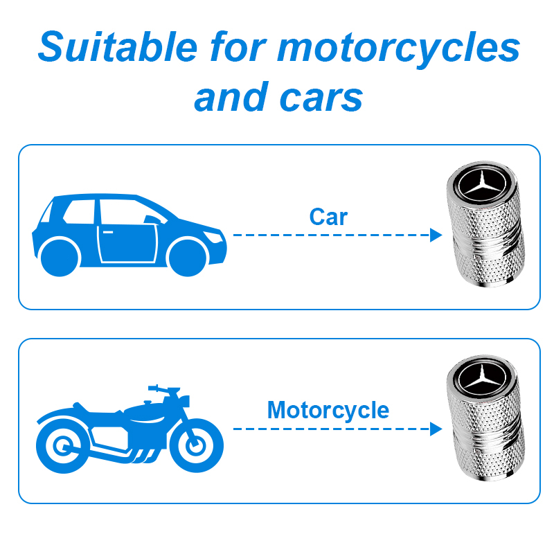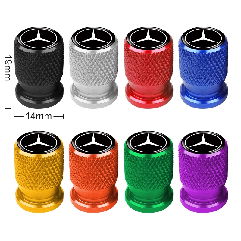4pcs Aluminium Alloy Car Tire Anti-leak Cap Double Threaded Styling Car Logo Wheel Valve Cover for Mercedes Benz Class W212 W211 W210 W203 W204 W205 CLA GLK CLS A C E