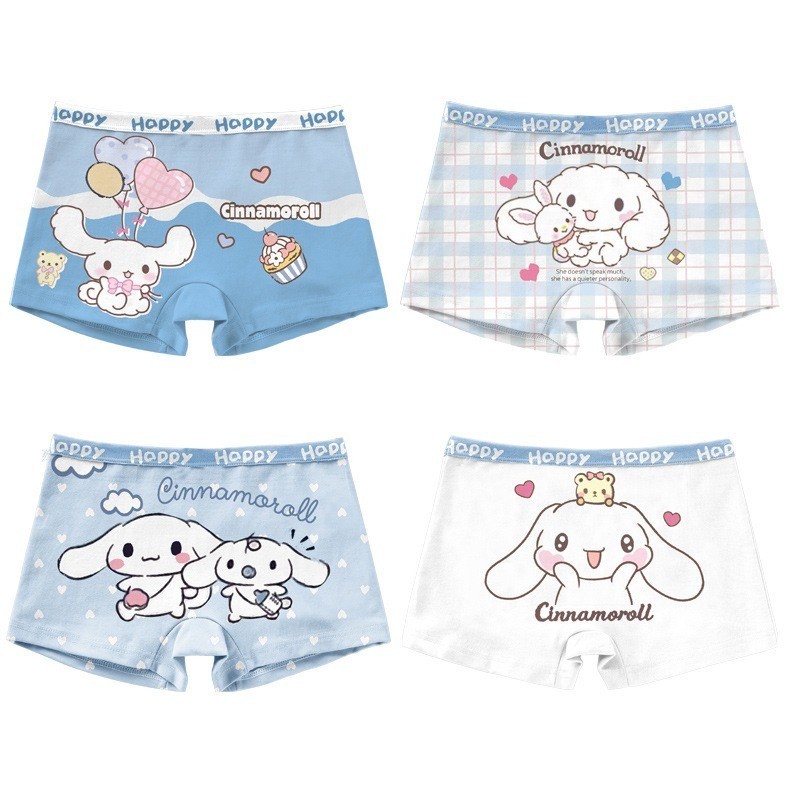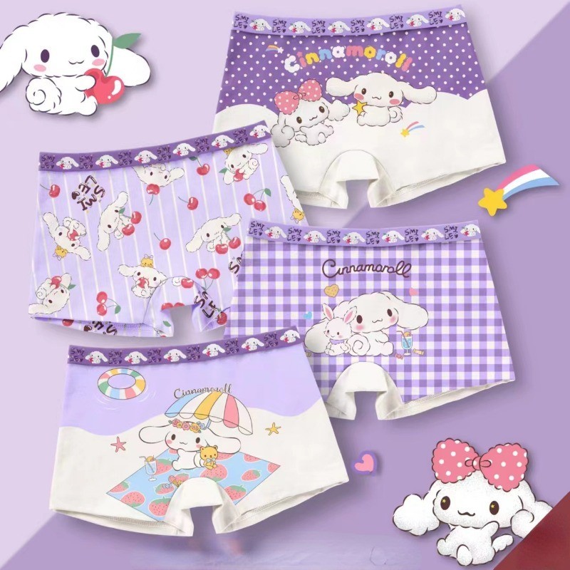 4PCS Cartoon Sanrio Printed Children's Flat Angle Panties Anime Cinnamoroll My Melody Kuromi Kawaii Comfortable Cotton Underwear