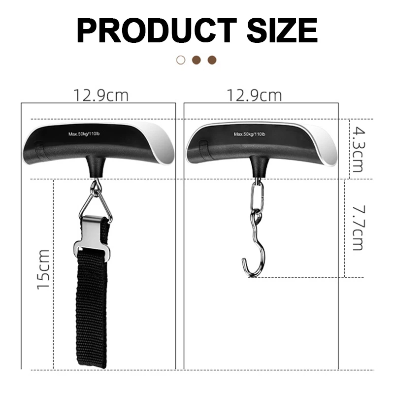 Colour:silver with green Led light Good buying at this price. The device is light and portable. This electronic luggage scale will automatically turn off the power, which can save battery in case you forget to turn it off.
