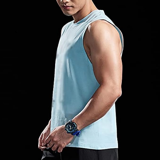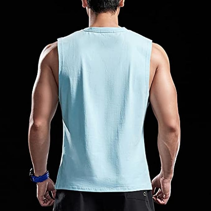 WXBDD Summer New Cotton Sleeveless Shirts Bodybuilding Leisure Tank Top Men Fitness Singlet Workout Vest Fashion Gym Clothing (Color : Blue, Size : XXLcode)