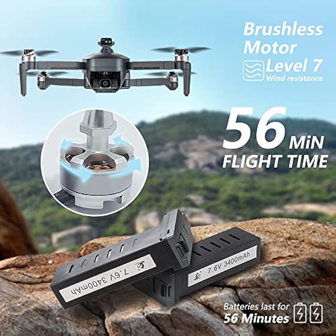 • ✈ 56 MiN FLIGHT TIME - This drone comes with 2 batteries, each battery provides 28 minutes flight time so the flight time increases to 56 minutes bring more fun! (Please charge the battery with 5V 1-2A charger)