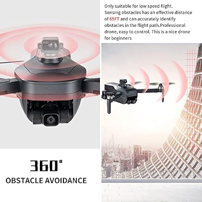 • ✈ 360°OBSTACLE AVOIDANCE - The drone uses a laser sensing camera to scan for obstacles in its flight path and avoid them easily. But only for low-speed flight! If an obstacle is detected within 20 meters (about 60 feet), the remote control will trigger an alert and the drone may not be able to move forward.