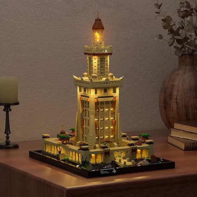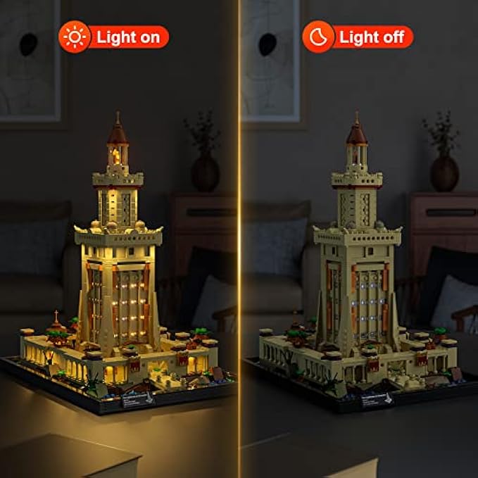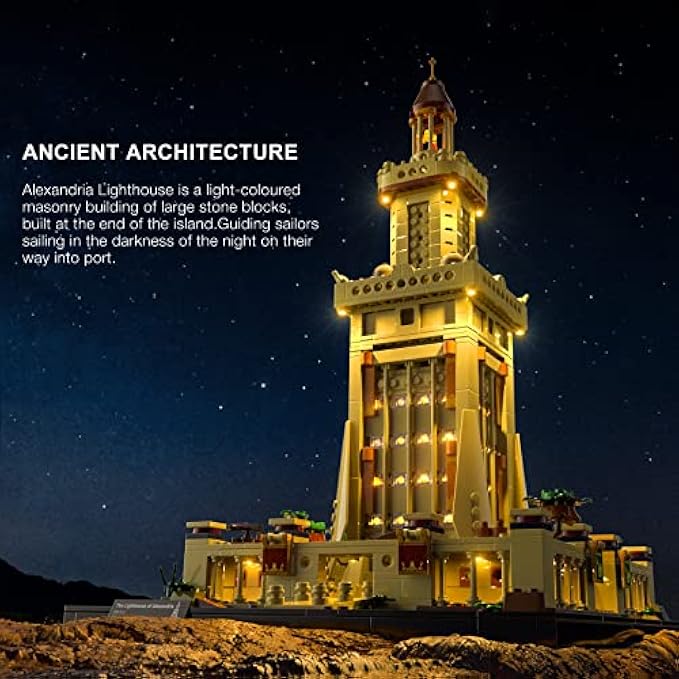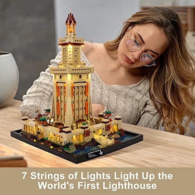 • Light up the World's First Lighthouse: This set contains 7 strings of light. Guided by installation steps, the lighthouse is lit up layer by layer until the top floor is lit up with flames that are refracted by the mirrors.