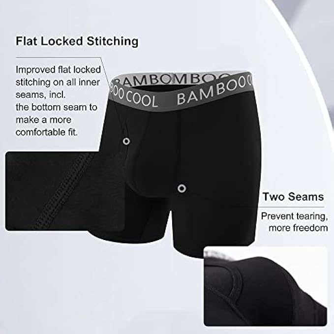 <li class="a-spacing-mini"><span class="a-list-item"> Bamboo Viscose </span></li> <li class="a-spacing-mini"><span class="a-list-item"> Machine Wash </span></li> <li class="a-spacing-mini"><span class="a-list-item"> HIGH-QUALITY MATERIAL: Our men’s underwear boxer briefs are made of bamboo viscose, which is soft, breathable, moisture-wicking, and keeps you feeling fresh all day long. </span></li> <li class="a-spacing-mini"><span class="a-list-item"> SIMPLY DESIGN: Every piece of underwear is designed with a 3D U-shaped fly pouch, which gives you freedom of movement. There is no wedge in the back of the boxer briefs, allowing for the comfort of men’s underwear next to skin and perfect to eliminate pinching and binding. </span></li> <li class="a-spacing-mini"><span class="a-list-item"> SIMPLY STYLE: These men's boxer briefs feature an elastic waistband and it will provide a comfortable fit. Big and tall, with plenty of horizontal pocket space. Simple color and style bring a neat feeling to underwear. </span></li> <li class="a-spacing-mini"><span class="a-list-item"> NO RIDE UP: It’s no-ride-up leg construction keeps fit consistently and prevents bunching. The four-way stretch allows you to move freely. They are also perfect for every occasion, running, skiing, skateboarding, football, baseball, basketball, tennis, volleyball, soccer, and hiking. </span></li> <li class="a-spacing-mini"><span class="a-list-item"> QUALITY GUARANTEE: 100% Money Back Guarantee. If you are not satisfied with our products, please feel free to contact us and we will be sure to offer you a full refund or a new replacement quickly and efficiently! </span></li>