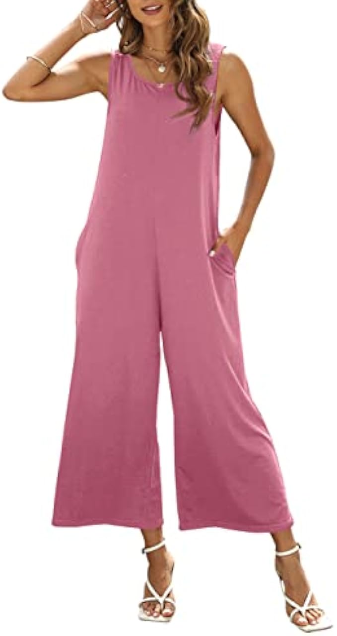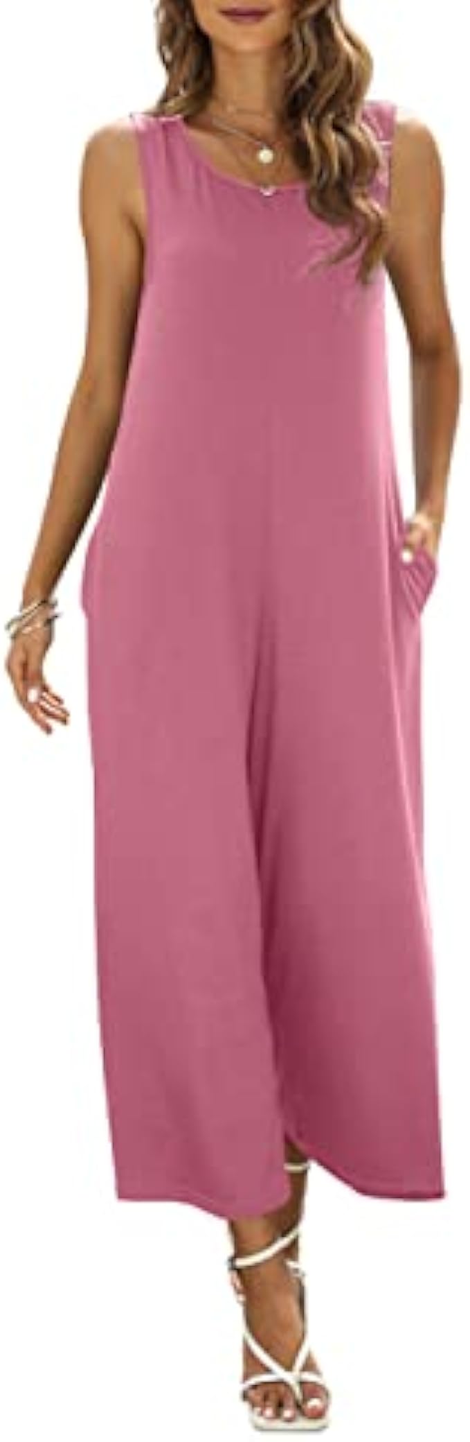 Nfsion Women's Summer Casual Loose Tank Jumpsuit Sleeveless Crewneck Jumpsuit Romper with Pockets