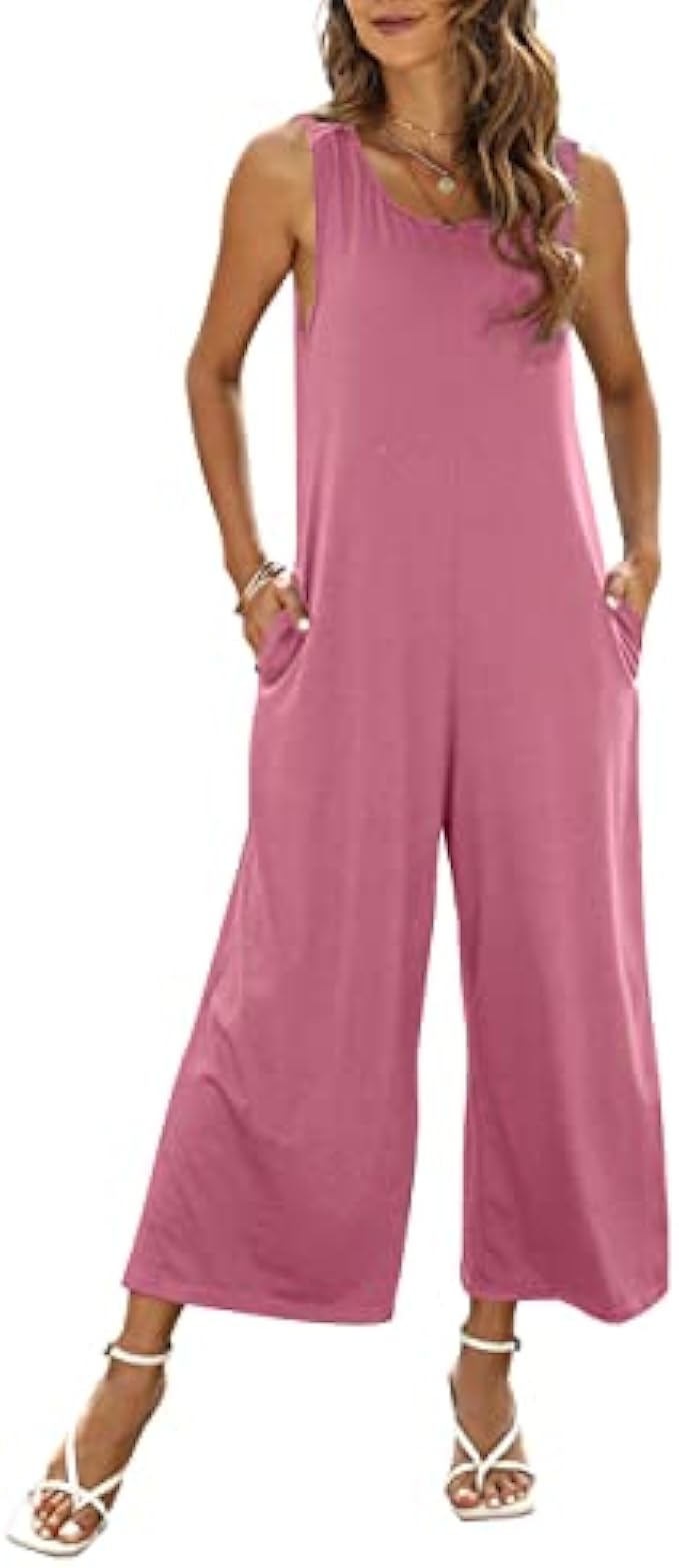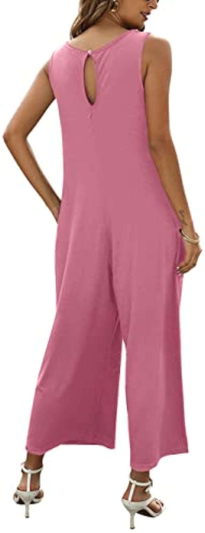 <li class="a-spacing-mini"><span class="a-list-item"> 60% polyester + 35% cotton and 5% spandex </span></li> <li class="a-spacing-mini"><span class="a-list-item"> Imported </span></li> <li class="a-spacing-mini"><span class="a-list-item"> Pull On closure </span></li> <li class="a-spacing-mini"><span class="a-list-item"> Machine Wash </span></li> <li class="a-spacing-mini"><span class="a-list-item"> Material: 60% polyester + 35% cotton and 5% spandex, soft and stretchy, comfortable to wear. </span></li> <li class="a-spacing-mini"><span class="a-list-item"> Features: Women's Sleeveless Jumpsuit, Scoop / Crew Neck, Two Pockets on the Sides, Solid Color Jumpsuit, Loose Fit, Wide Leg, Long Jumpsuit, Keyhole Back for Easy Wear. </span></li> <li class="a-spacing-mini"><span class="a-list-item"> Size: S=US (4-6), M=US (8-10), L=US (10-12), XL=US (14-16), XXL=US (18-20) ); please allow 1 inch/2 cm measurement error. </span></li><li class="a-spacing-mini"><span class="a-list-item">Applicable Occasions: Daily life, dating, party, office, beach, vacation, club wear and many more occasions.</span></li> <li class="a-spacing-mini"><span class="a-list-item">Garment Care: Machine washable. Hand wash in cold water, do not bleach.</span></li>