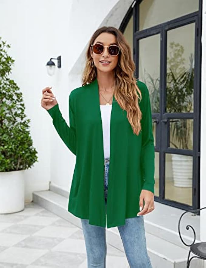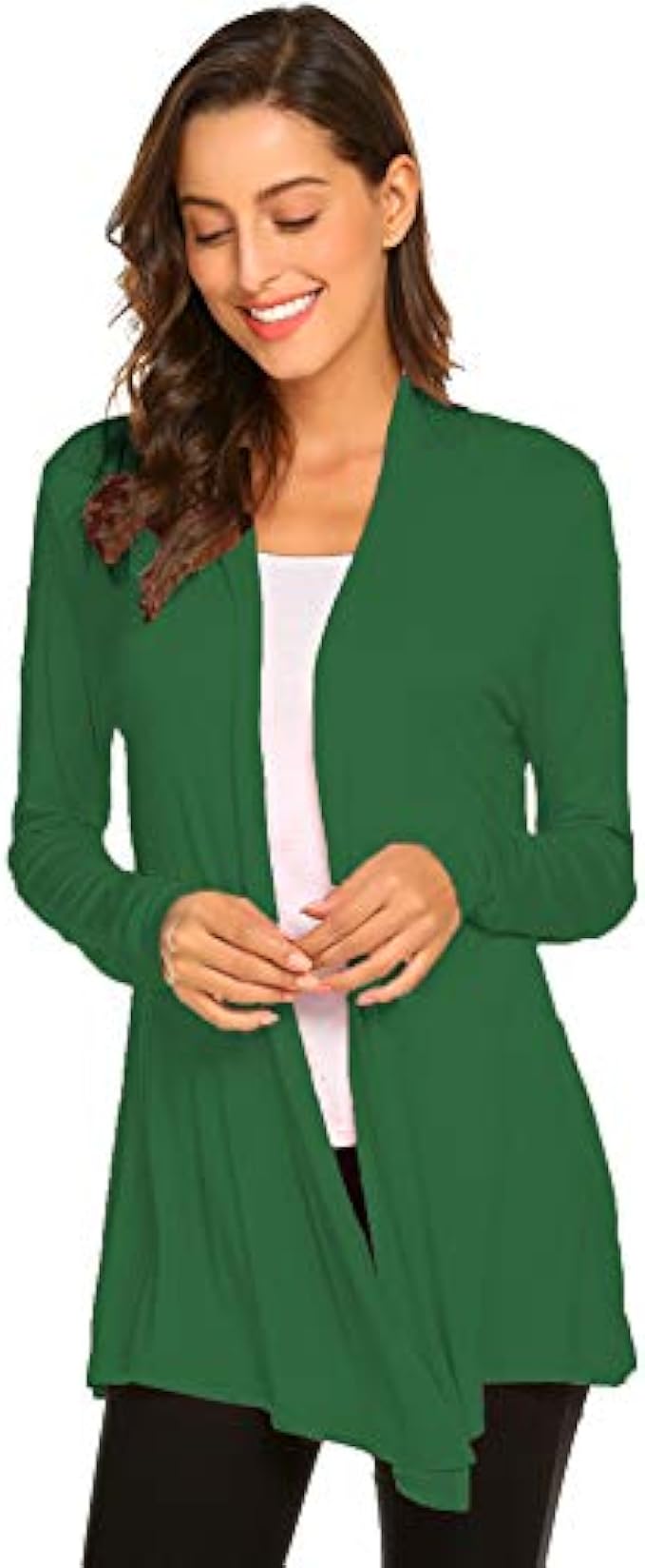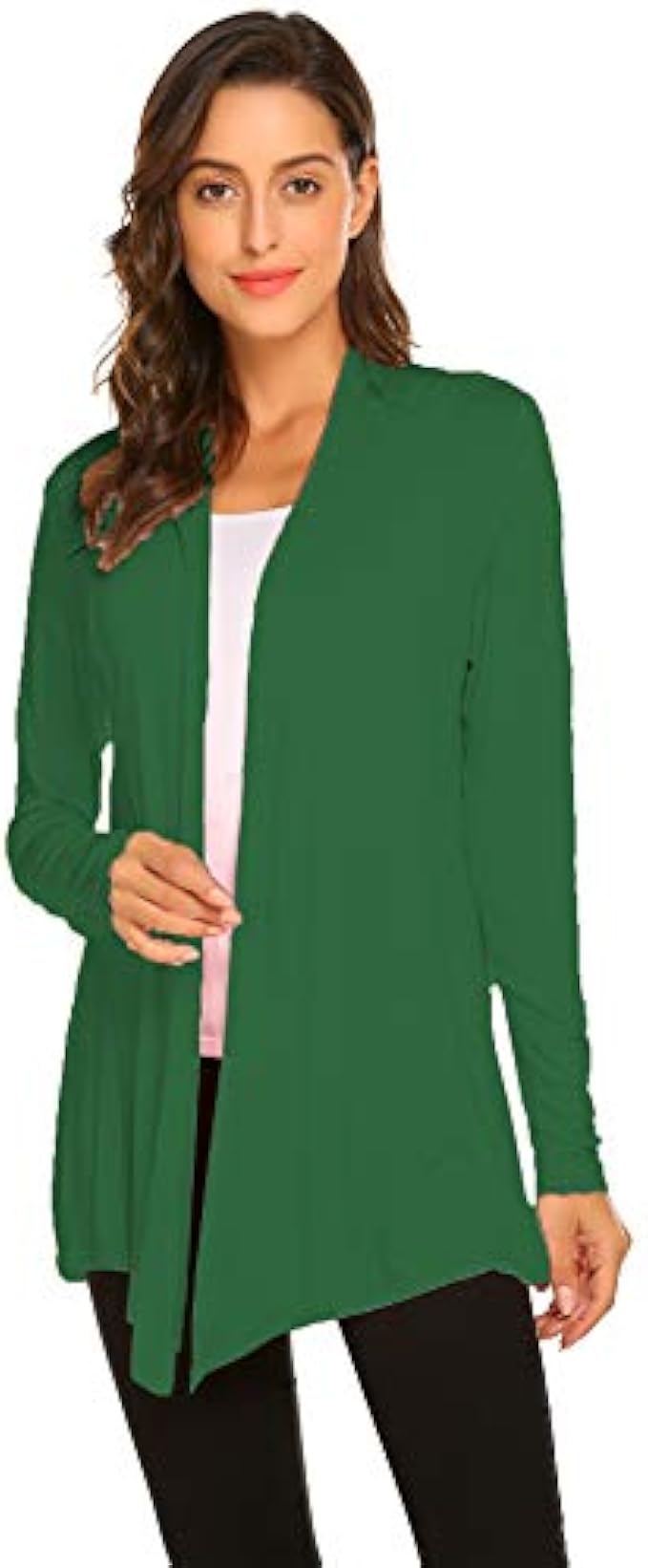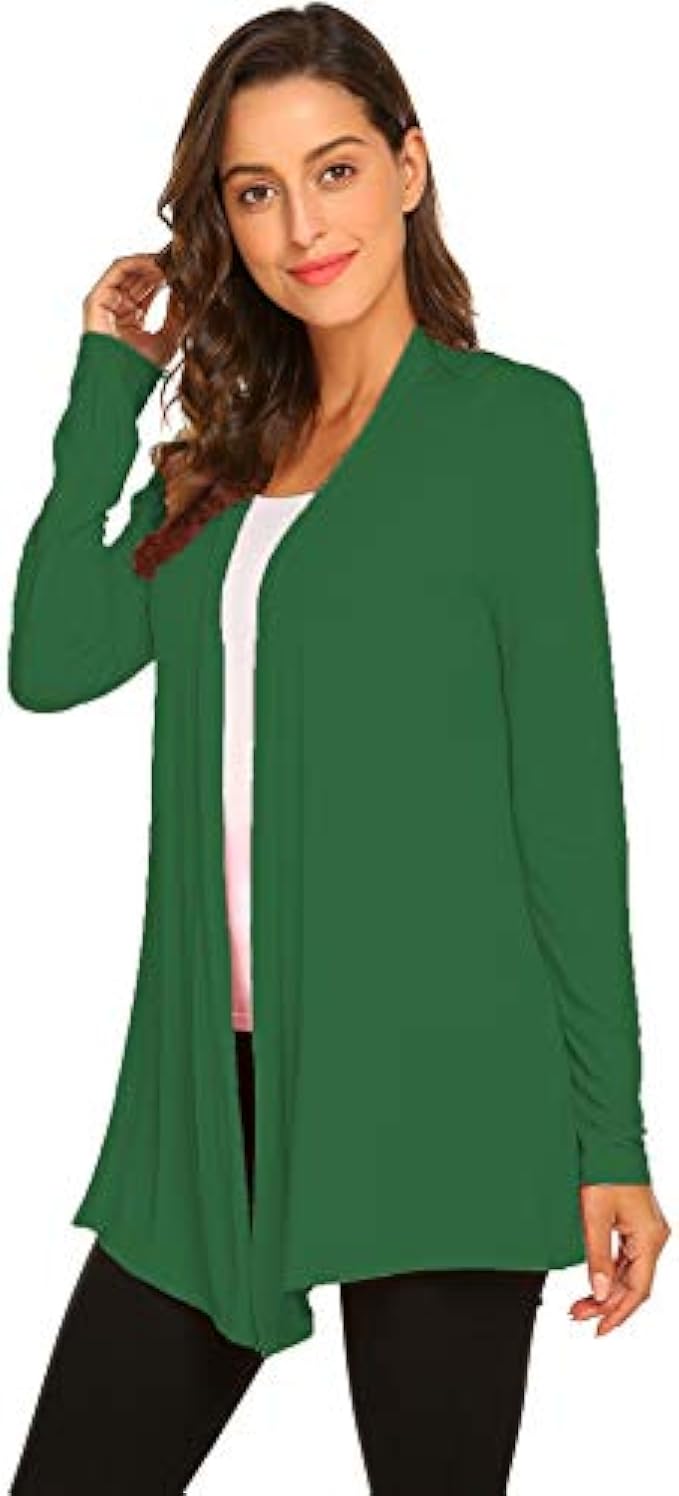 <li class="a-spacing-mini"><span class="a-list-item"> Basic:95% Viscose, 5% Spandex. Leopard cardigan:80% Polyester, 20% Spandex. </span></li> <li class="a-spacing-mini"><span class="a-list-item"> Imported </span></li> <li class="a-spacing-mini"><span class="a-list-item"> Pull On closure </span></li> <li class="a-spacing-mini"><span class="a-list-item"> do not bleach </span></li> <li class="a-spacing-mini"><span class="a-list-item"> Light t-shirt knit/soft jersey-type knit cardigans for women, flowy, drape nicely, stretchy, super soft and comfortable. It is made of thin material, it won't smother you inside, not baggy, perfect wear to every day. Great for spring, summer, fall, especially perfect for transitional seasons. </span></li> <li class="a-spacing-mini"><span class="a-list-item"> Design: Loose dressy casual long sleeve cardigans for women juniors, regular plus size(S-XXXL), light weight, open front, soft drape, solid color, classic basic cardigan sweaters for women. Ladies cardigans lightweight, duster cardigans for women. </span></li> <li class="a-spacing-mini"><span class="a-list-item"> Occasion:business casual, work office, daily wear, schools, classroom, church, gathering, meetings, conference, home, house, restaurant, play, outdoor wedding, valentine party, beach, airports/planes, air-conditioned room, travel, cruise, trip, vacation, holiday, shopping, street, cool spring/summer/fall night evening, etc. Perfect match with your tank tops, sleeveless blouses tops, casual tshirt or shirts as undershirts, also pair with your jeans, leggings, shorts, skirts and pants. </span></li><li class="a-spacing-mini"><span class="a-list-item">There are 6 sizes available. S-US(4-6); M-US(8-10); L-US(12-14); XL-US(16-18); XXL-US(20); 3XL-US(22W-24W). Our Model wears Size Small. Model Specs: Height 5'8"/176cm, Waist 24"/61cm, Bust 35.43"/85cm. Please kindly check Our Size Chart in product description before purchase. Thank you. Due to different monitors and lighting, the color of the actual may be slightly different with the above images. Please refer to the actual product received.</span></li> <li class="a-spacing-mini"><span class="a-list-item">Garment Care: Machine Wash/Hand Wash. Do Not Bleach. Get rid of the wrinkles:If you pull it out of the dryer and hang up immediately they are not wrinkled at all.</span></li>