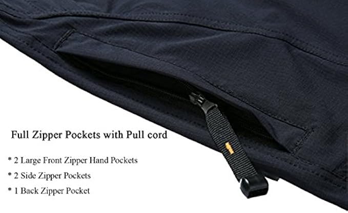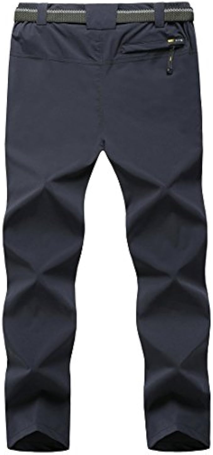 <li class="a-spacing-mini"><span class="a-list-item"> 90% Nylon, 10% Spandex </span></li> <li class="a-spacing-mini"><span class="a-list-item"> Imported </span></li> <li class="a-spacing-mini"><span class="a-list-item"> Zipper closure </span></li> <li class="a-spacing-mini"><span class="a-list-item"> Quick dry fabric Surface adopting water-repellent quick dry fabrics, make you feel cool and comfortable in outdoor condition. </span></li> <li class="a-spacing-mini"><span class="a-list-item"> Thin &amp; Quick-Dry &amp; Water repellent windproof outdoor pants keep you comfortable and dry in the summer spring and windy weather. </span></li> <li class="a-spacing-mini"><span class="a-list-item"> Belt is Included &amp; Elastic Waist: Belt included.Adjustable stretchy waist with belt allows the maximum comfort. </span></li> <li class="a-spacing-mini"><span class="a-list-item"> 5 Zip Pockets: 2 zip large pockets, 2 thigh zip pockets and 1 zip back for convenient and secure storage, allows you to carry all your stuff like cameras, GPS, batteries, wallet, etc. while walking around on tours </span></li> <li class="a-spacing-mini"><span class="a-list-item"> Slim fit hiking pants for men,perfect for mountain climbing,Camping,skiing,hiking,running,cycling,traveling,walking the dog,fishing,hunting,taking a walk and other indoor &amp; outdoor sports. </span></li>