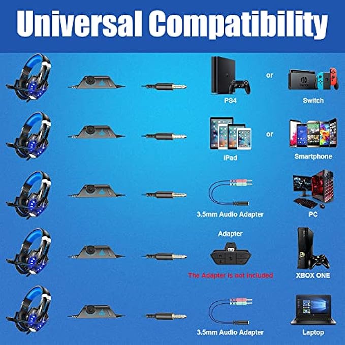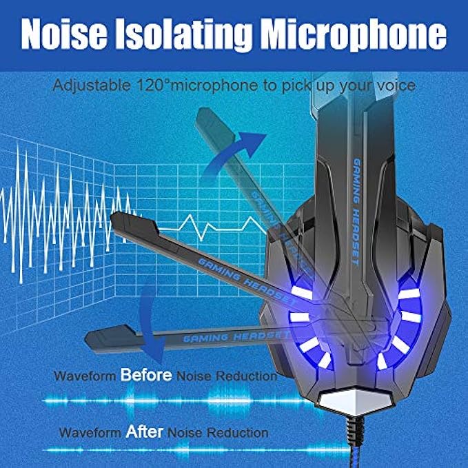 BENGOO G9000 Stereo Gaming Headset for PS4 PC Xbox One PS5 Controller, Noise Cancelling Over Ear Headphones with Mic, LED Light, Bass Surround, Soft Memory Earmuffs for Laptop Mac Nintendo NES Games