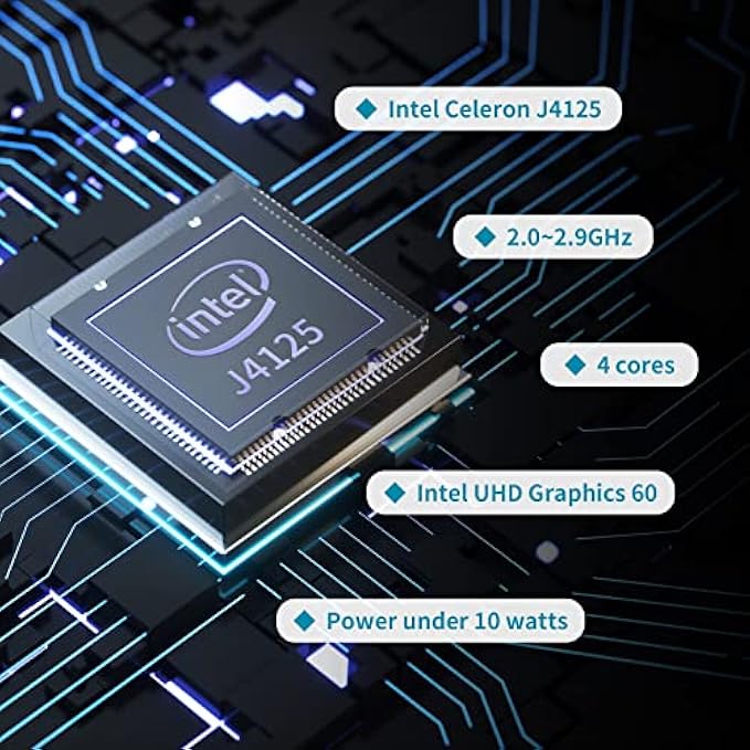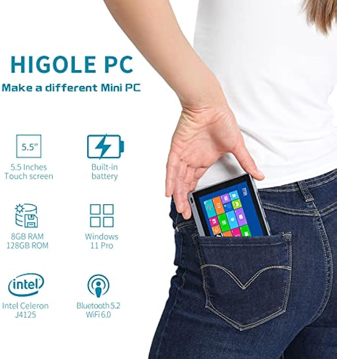 【Fanless Mini PC Portable】HIGOLE PC MINI computer about 5.59 x 3.58 x 0.75-Inch, Can be used without mouse and keyboard and built-in battery can use about 5 hours. You can control any other laptop via Remote Desktop protocol from the Micro Computer, if you are outside office, study or contral for smart home systems.GOLE 1 PRO MINI PC is a good choice. 【Windows 11 Pre-installed】The MINI PC pre-installed with the newest Windows 11 Pro and a valid license, which is support to remote desktop access. It has TPM 2.0 hardware and supports Windows 11 pro upgrade. supports Windows 10, mini computer, Support IOT building, Ideal for developers and programmers running dual custom OS. 【Celeron J4125 Processor】This small mini pc equipped with Faster J4125 processor with CPU/GPU throttling, it's a competent quad core fanless mini pc that does a decent job at business family and entertainment daily tasks, It's base operating frequency 2.0 GHz/s to 2.7GHz(4MB cache), draws under 10 watts of power, Metal body helps to expel heat quickly and completely silent no noise, can Improve efficiency. 【WiFi 6.0 and Bluetooth 5.2】The Newest WiFi 6.0 MINI PC, with dual-band WiFi 2.4GHZ and 5.0Ghz, Can reach 1300Mbps that provide double newly faster internet experience. Gigabit Ethernet supports 10/100/1000Mbps, Bluetooth 5.2 fast data transfer speed up to 2Mbps, for web surfing, news reading, text editing, emailing Provides a different surfing experience. 【Small and Power Computer】GOLE 1 PRO mini pocket pc all important connections are available, 4 x USB 3.0 ports, 2 x HDMI 2.0 ports, Dual HDMI supports 4k, 1 x ethernet ports, 1 x TF card ports.supports Wake on LAN , PXE, Auto Power on, RTC Wake Settings built-in audio, built-in microphone.
