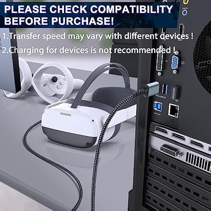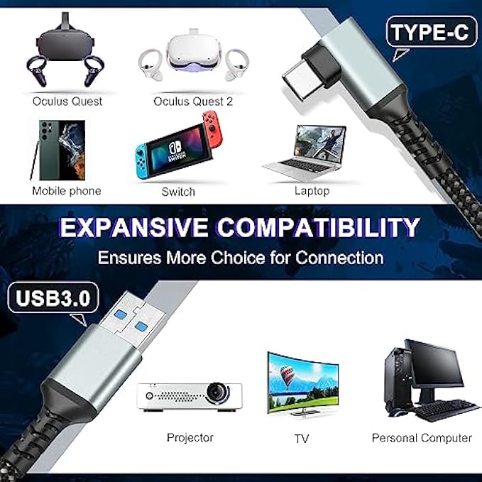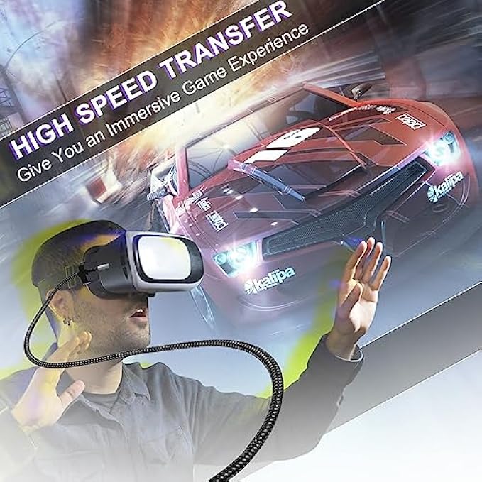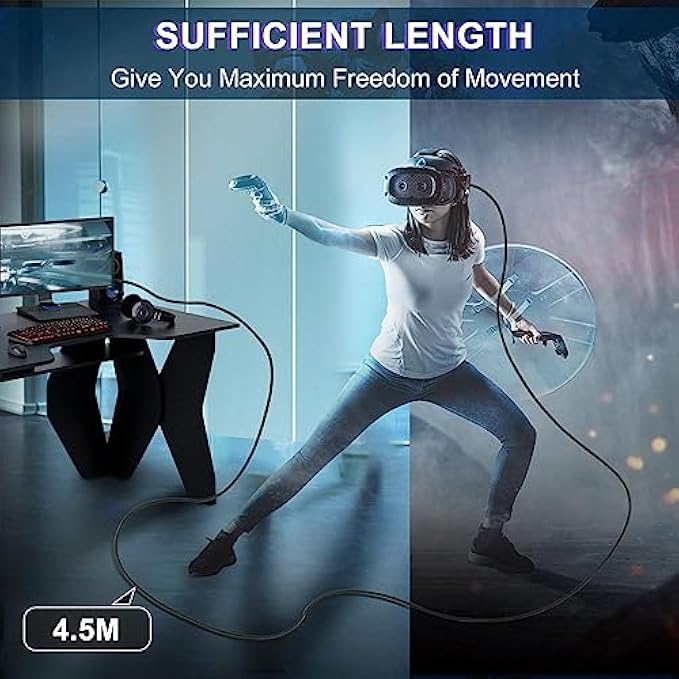 • 【Speedy Transfer and Sufficient Length】Newest USB 3.0 high-speed transfer (up to 5Gbps) brings you a smooth and wonderful game experience. Length of 4.5 meters gives you the biggest flexibility of movement during game time, you can follow the movements in VR games!(Note: Transfer speed may vary with different devices; fast charging may not work for some devices).