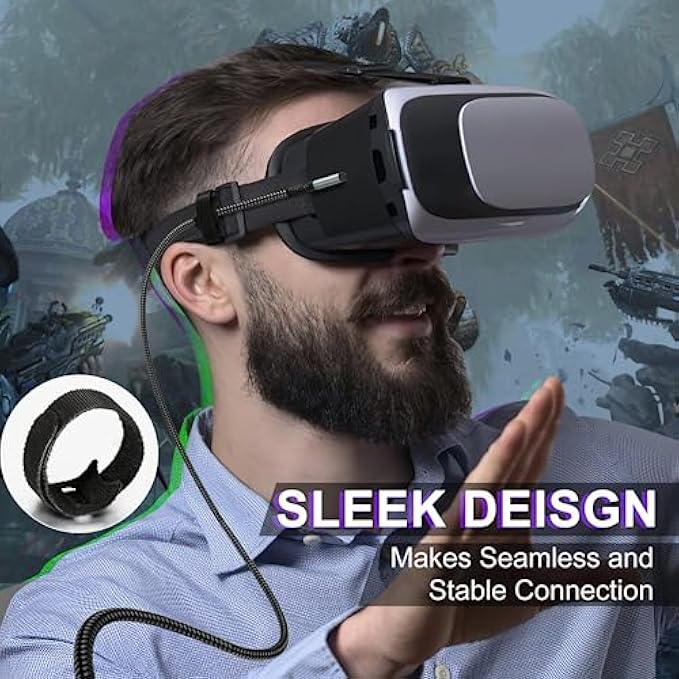 • 【Smart Design】The Type-C port of this link cable is L-shaped, tight plug-in to your headset with Velcro. Its surface is covered with Nylon braid, sturdy and durable structure, long time for use! Affordable price makes it a perfect substitute for official one!