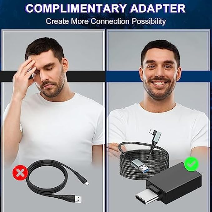 • 【Multi-Connection Choice】This VR link cable comes with an adapter of 3.0 to Type-C. That means you will have a cable of double Type-C port, making more possible connection between various devices!