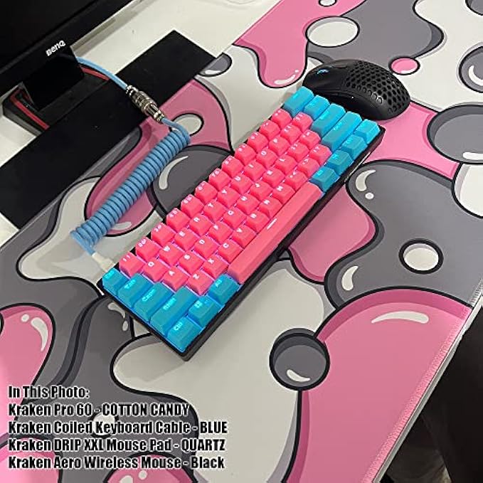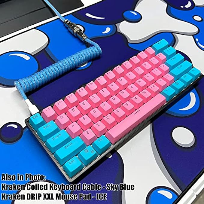 Kraken Light Blue Coiled Keyboard Cable - Artisan Coiled USB C Cable with Aviator Connector for Mechanical Gaming Keyboards (Sky Blue)