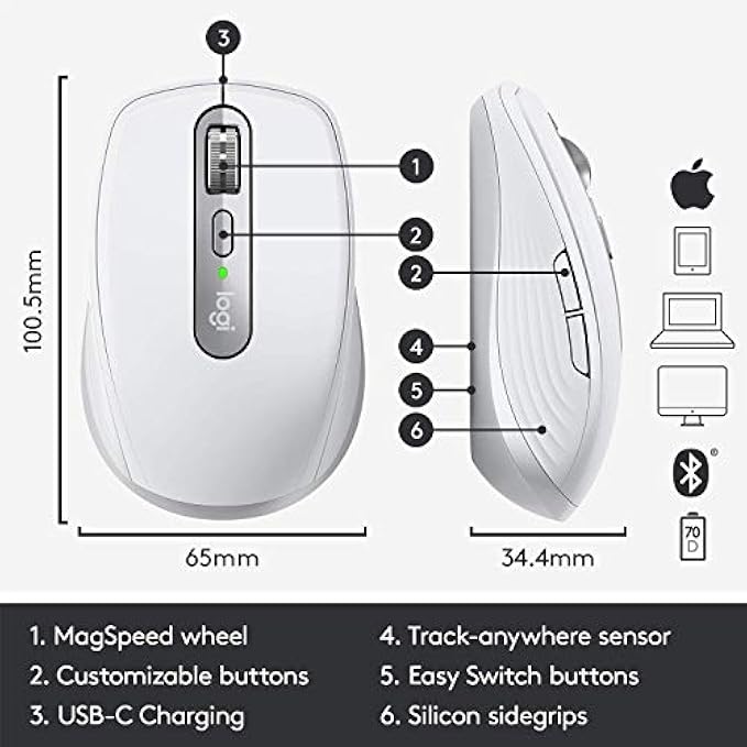 • MASTERED FOR MAC - MX Anywhere 3 for Mac is optimized for macOS and iPad compatible. Connect up to three devices and switch between them at the tap of a button.