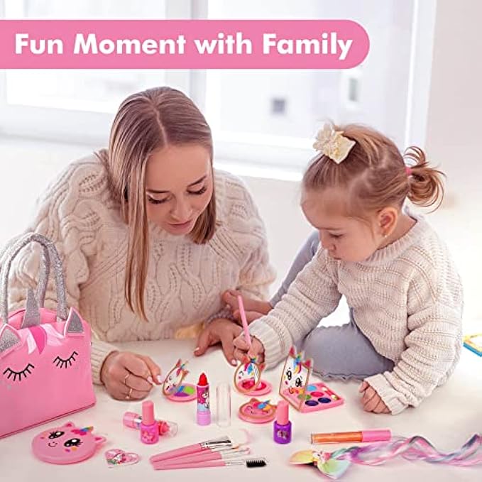 • EXCELLENT CHOICE FOR GIRLS GIFT: The kids makeup kit for girls can be used with mothers, strengthen parent-child communication. It’s a perfect starter kit for little princess that want to feel grown up. Best choice for birthday gifts, Christmas gifts, Halloween gifts, Makeup parties gifts, children's day presents for little girls age 3 4 5 6 7 8 9 year old.