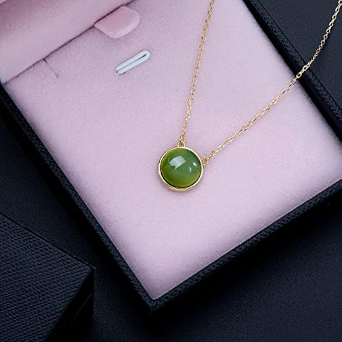 • About Green Jade Necklace -- The jade necklace is a perfect circle and a polished finished natural green jade with 14k gold pendant, with sterling silver 14k gold plated necklace.The jade necklace gold for women is perfect for you. 12mm circle jade can makes your special, passion and beautiful stand out even more. The Green Jade Gold Necklace Symbols represent "Blessings,wealth and health".