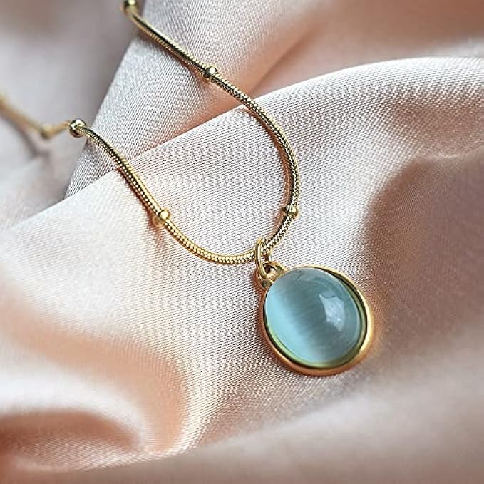 • MORE WAYS TO WEAR:The vibrant blue color of the jade adds a touch of natural beauty to any outfit, making this necklace perfect for both formal and casual occasions. The pendant of necklace inlayed with round solitaire birthstone sparkles