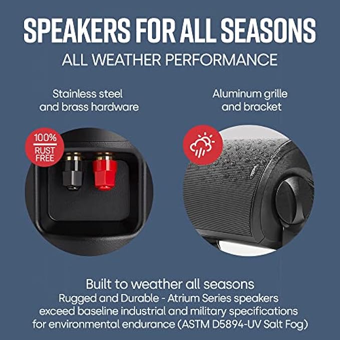WIDER SOUND DISPERSION & SURPRISINGLY POWERFUL BASS driven by a 4 1/2" mineral filled Dynamic Balance polymer cone and a 3/4" anodized aluminum dome tweeter with rubber surround. 80W power cuts through loud, jarring background noises.