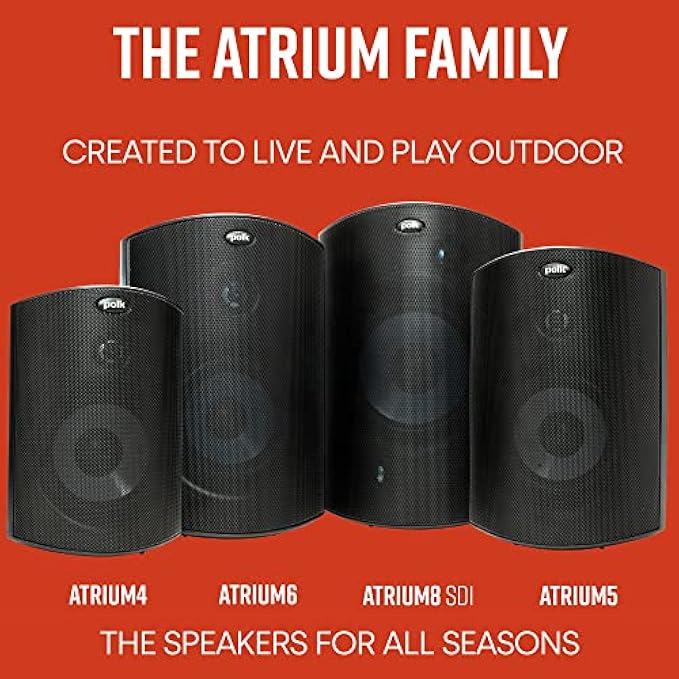Recognized as ONE OF THE BEST-LOOKING OUTDOOR SPEAKERS, Polk Atrium 4 speakers come with a steeply-angled baffle design filling open spaces with big full-range sound! The outer profile easily blends into the corners of the outdoor walls.