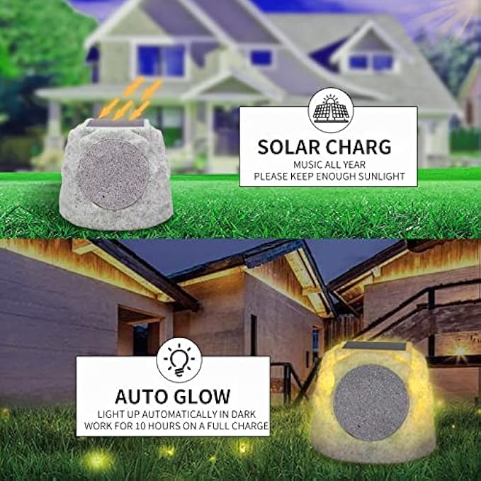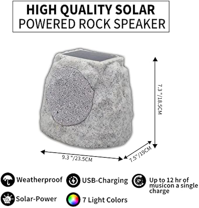 GGII Rock Speakers Outdoor Waterproof Solar-Powered Wireless Bluetooth Portable Speaker Outdoor Bluetooth Speaker with 7 Light Colors for Patio, Party, Pool, Deck, Yard, Garden and Home