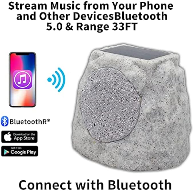BLUETOOTH PAIRING FUNCTION: The Rock Wireless Speaker can pair via Bluetooth, up to 33 feet away. Simply press a button to connect your Bluetooth device and start listening. Turn on Bluetooth, pair with speaker, and enjoy an immersive experience.(Note: If it is not connected within 20 minutes, Bluetooth will be automatically turned off and the product will enter power saving mode.)
