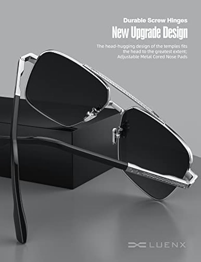 LUENX Aviator Sunglasses for Men, Trendy Retro Oversized Rectangular Frame UV400 Protection