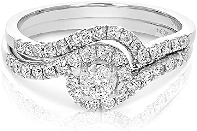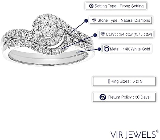 VIR JEWELS 3/4 cttw Diamond Prong Set Wedding Engagement Ring Set 14K White Gold Bridal