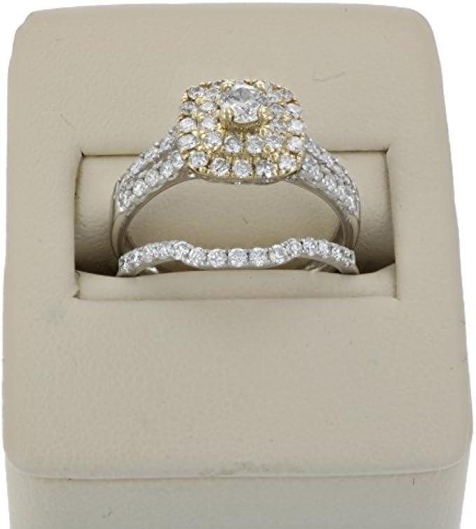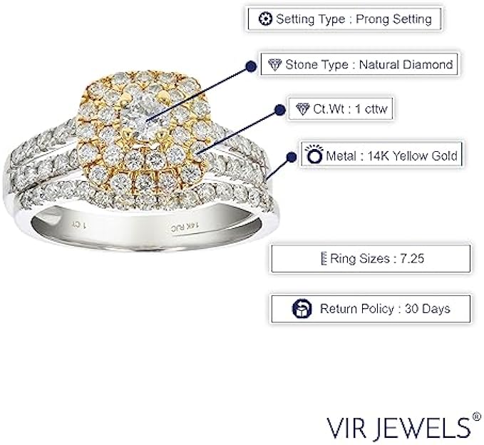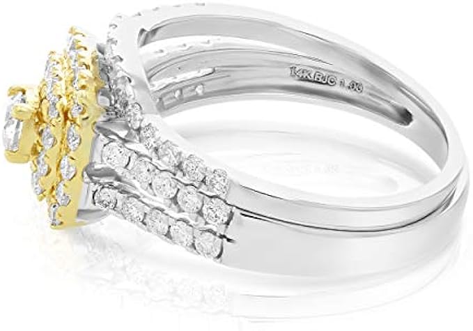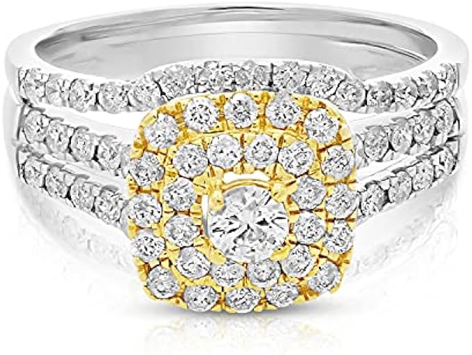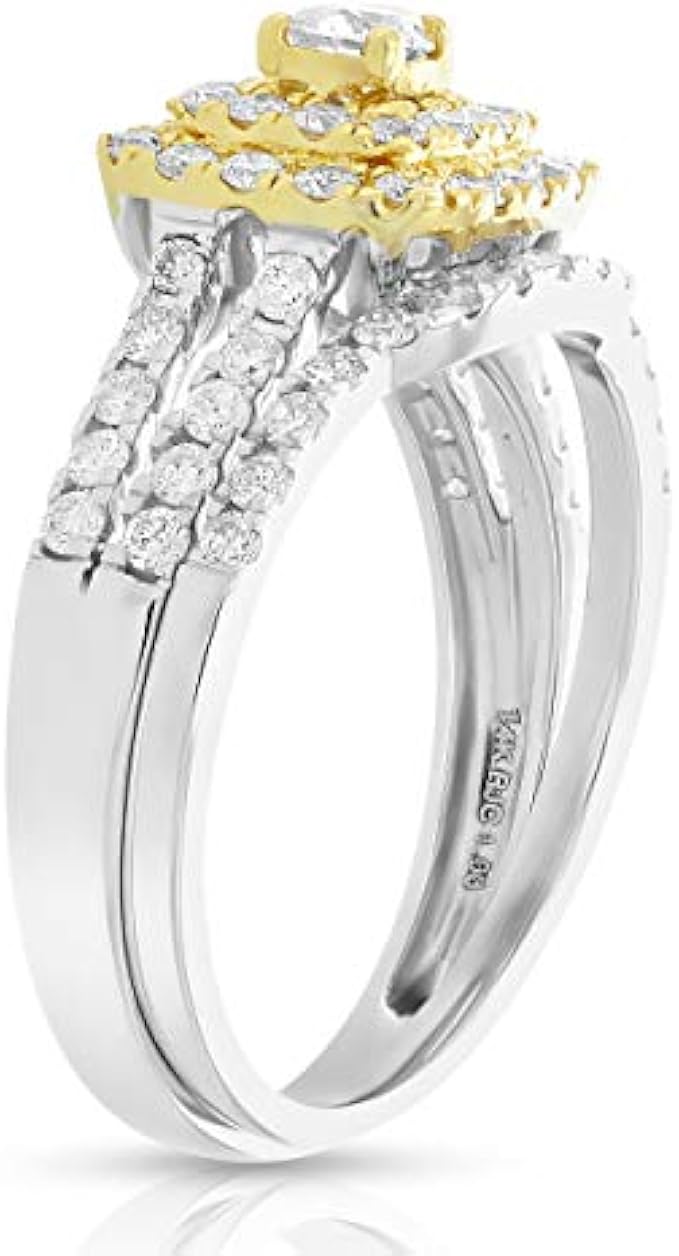 VIR JEWELS 1 cttw Diamond Wedding Bridal Ring Set 14K Two Tone Gold Cushion Halo Engagement
