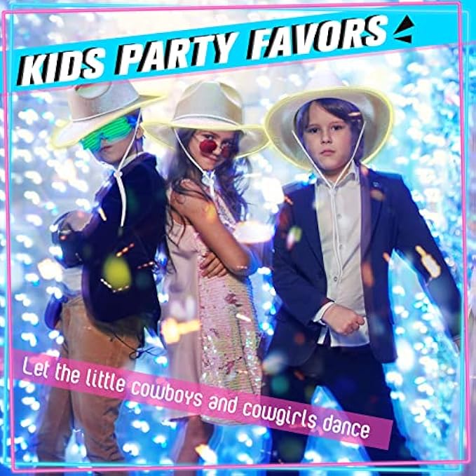 10 Pack Lights Cowboy Cowgirl Hat LED Flashing Hat Light Up LED Cowboy Cowgirl Hat for Western Cowboy Costume Role Play Xmas