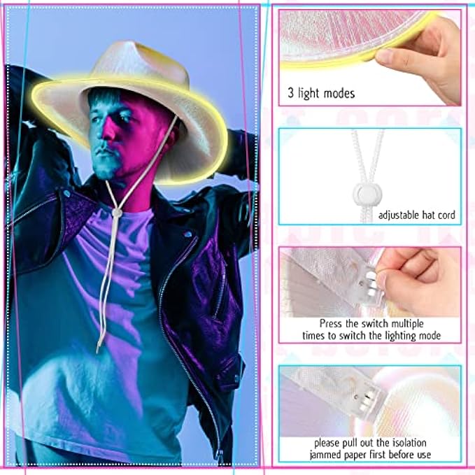 • Appropriate Occasions: the LED cowboy hat for women is suitable for dress up and role playing when you are going to theme parties, Halloween or Christmas celebrations, western bridal shower; You can also use these as daily wear