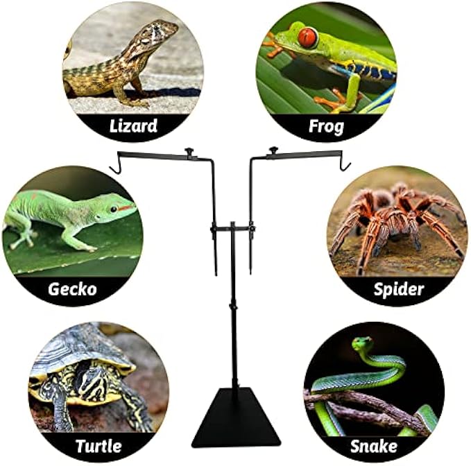 • 【Wide Application】The reptile terrarium heating light bracket can be used for different size of pet terrarium and suitable for various reptiles, amphibians and plant, such as bearded dragons, hermit crabs, lizards, geckos, snakes, spiders, tortoises, turtles, frogs, succulents, etc.