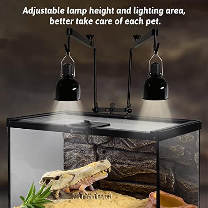 • 【Double Hook Design】One reptile lamp stand can hold two lamps. The dual hook holder design allows the light to cover a wider area of the glass terrarium and can take care of each small animal in the tank(the product does not include the light).