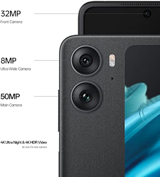 • 50 MP, f/1.8, 23mm (wide), 1/1.56", 1.0µm, multi-directional PDAF, 8 MP, f/2.2, 112˚, (ultrawide), Front, 32 MP, f/2.4, 22mm (wide), 1/2.74", 0.8µm, AF