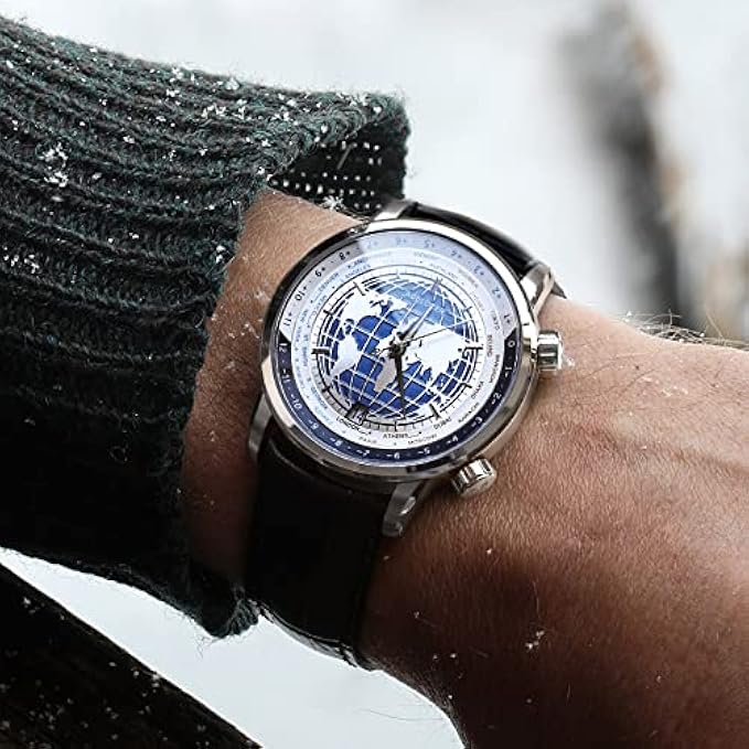 • Telling world time on your wrist: The world map and time zone cities are combined on the dial with 3D blue planet design, and 24 time zones around the world are displayed at the same time.