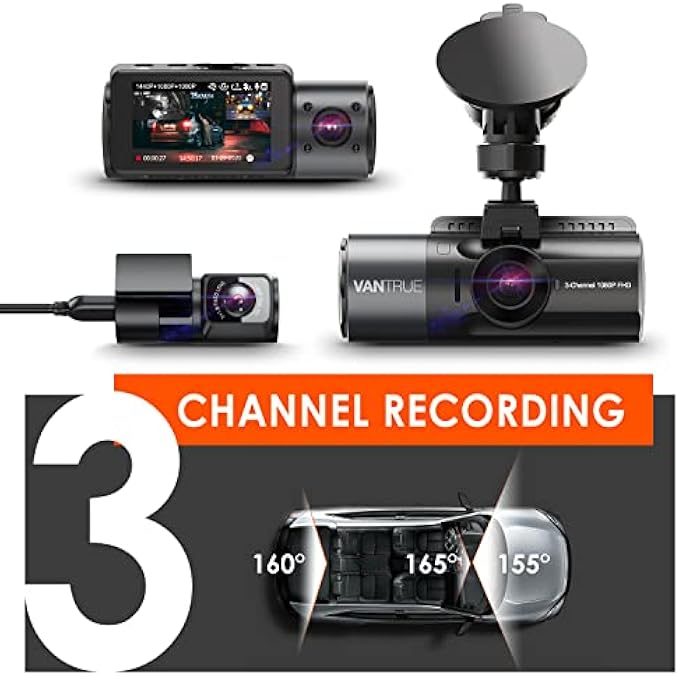 【Three Channel Front Inside Rear Dash Cam】The N4 is a triple channel dash cam which offers 155° front camera, 165° inside camera and 160° rear camera, it can simultaneously monitor the front, rear, and interior of your vehicle while providing audio at 1440P + 1440P + 1080P, protecting you from potential accidents and liability issues. 【4K & 1080P Front and Rear Dual Dash Cam】When set to front and rear dual recording mode, the cam provides a 4K 2160P resolution front camera and a 1080P rear camera. The rear cam is easily 360° adjustable with 20ft extension cable, and it works well for cars, SUVs, jeeps, and truck. The front camera can seamlessly record up to 4K when used alone, enabling clear capturing of license plates and road signs. 【1440P & 1440P Front and Inside Dual Dash Cam】You can configure the settings to record the front and interior of your whole cabin in 1440P + 1440P high resolution. The adjustable inside camera ensures more flexibility and better viewing, ideal for rideshare drivers that may need to present proof of activities within the vehicle. 【Infrared Night Vision Car Camera for Drivers】With high-performance STARVIS CMOS sensor, a big F1.4 aperture 6-glass lens observing road front, F1.8 6-glass lens observing rear, this car camera is able to increase exposure automatically in dark situations for capture clear videos footage; 4 IR LED lights facing the car cabin, which can accurately capture the driver and passengers even when the cabin is completely dark, perfect for rideshare drivers such as Uber, Lyft and Taxi. 【24 Hours Parking Mode】With low bitrate recording parking mode, the dash cam will keeps recording continuously and decreases the quality of the video to maximize the recording quantity. While the motion detection or collision detection parking mode allows the camera to automatically initiate recording when triggered by a motion or collision event. The 3 channel dash cam should be connected to the hardwire kit at all times (buy extra ASIN B083XB8T7T) or an external battery. 【Heat Resistant with Super Capacitor】This camera is powered by a super capacitor built to survive extreme weather conditions from 14°F to 158°F, making it ideal for extreme hot-weather or cold-weather areas. The super capacitor also extends the lifespan of the batteries further than lithium-ion batteries. 【Reliable Witness for Accident】Variable sensitivity G-sensor auto detects sudden shake/collision and emergency locks the footage to event folder following impact. Loop recording auto overwrite the oldest file when card is full. Auto LCD off avoid distracting. Optional GPS (need to buy separately B083XBS88L) to track route, location and speed in KM/H or MP/H. Capable of housing up to 256GB of external memory (not in the box, recommend Vantrue sd card). 【18m Warranty】This camera comes with an extendable 18-month warranty, costumer support through email within 24 hours, and a 100% satisfaction guarantee. Also, the product will receive firmware updates for continuous improvements and new features. 20ft rear camera cable, fits for most cars. 30ft extension cable(Buy separately, the package only includes the 20ft rear camera cable) available for big suvs. Note: It DOESN’T support WiFi or Bluetooth.