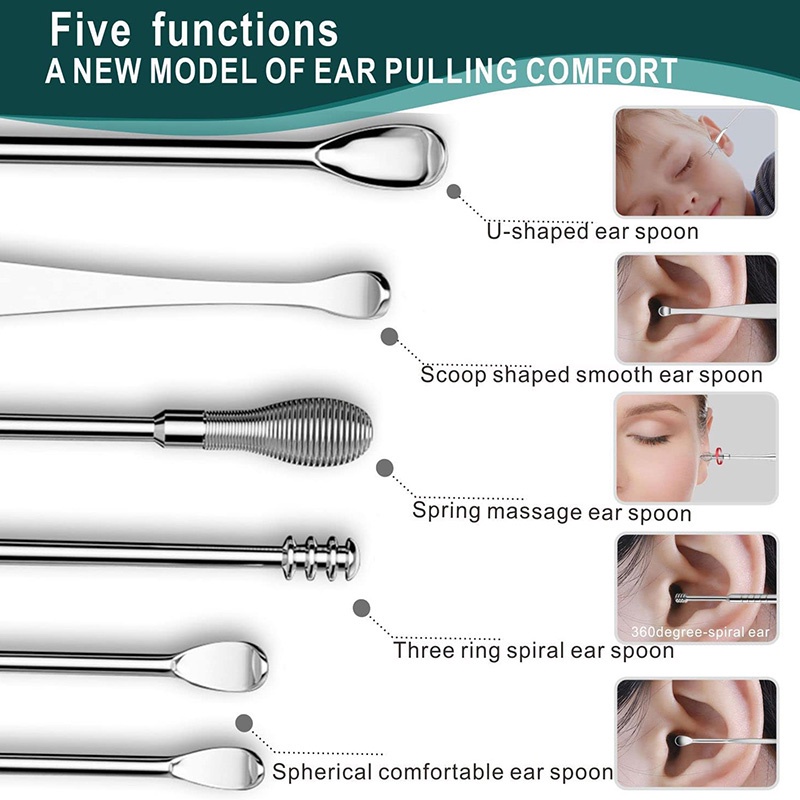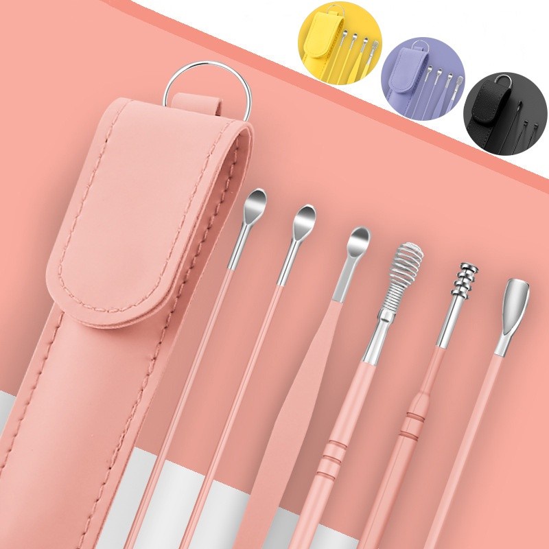 6Pcs/set Portable Multifunctional Ear Wax Remover Ear Cleaning Kit Ear Pick Earpick Ear Cleaner Spoon Care Ear Clean Tools