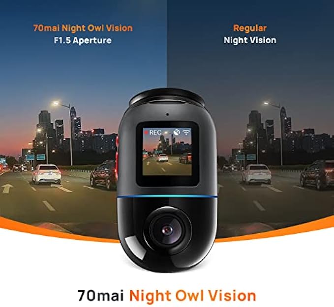 • 【Outstanding Image Quality 1080P】 F1.5 large aperture enhances image quality in low-light conditions. Meanwhile, 70mai dash cam Omni is equipped with PureCelPlus-S HDR technology to deliver best-in-class low-light performance, automatically correcting exposure levels. Thus, providing excellent color performance under ultra-high contrast conditions such as entering and exiting tunnels. And helps enormously elevate video quality without blinding front cars' license plates with strong headlights.