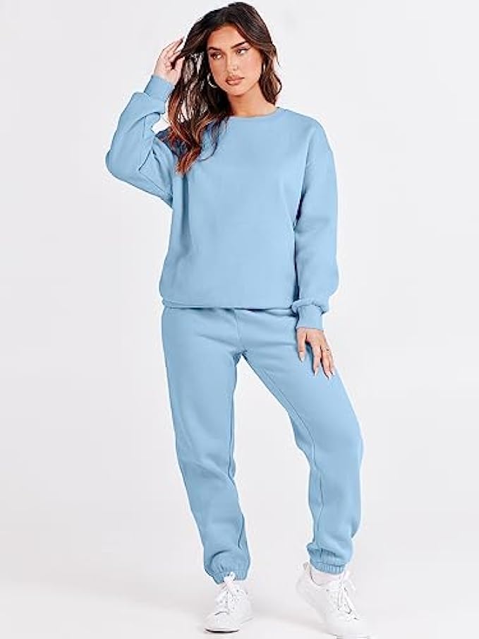 ANRABESS Women's Two Piece Outfits Long Sleeve Crewneck Sweatsuit with Jogger Pants Lounge Sets with Pockets